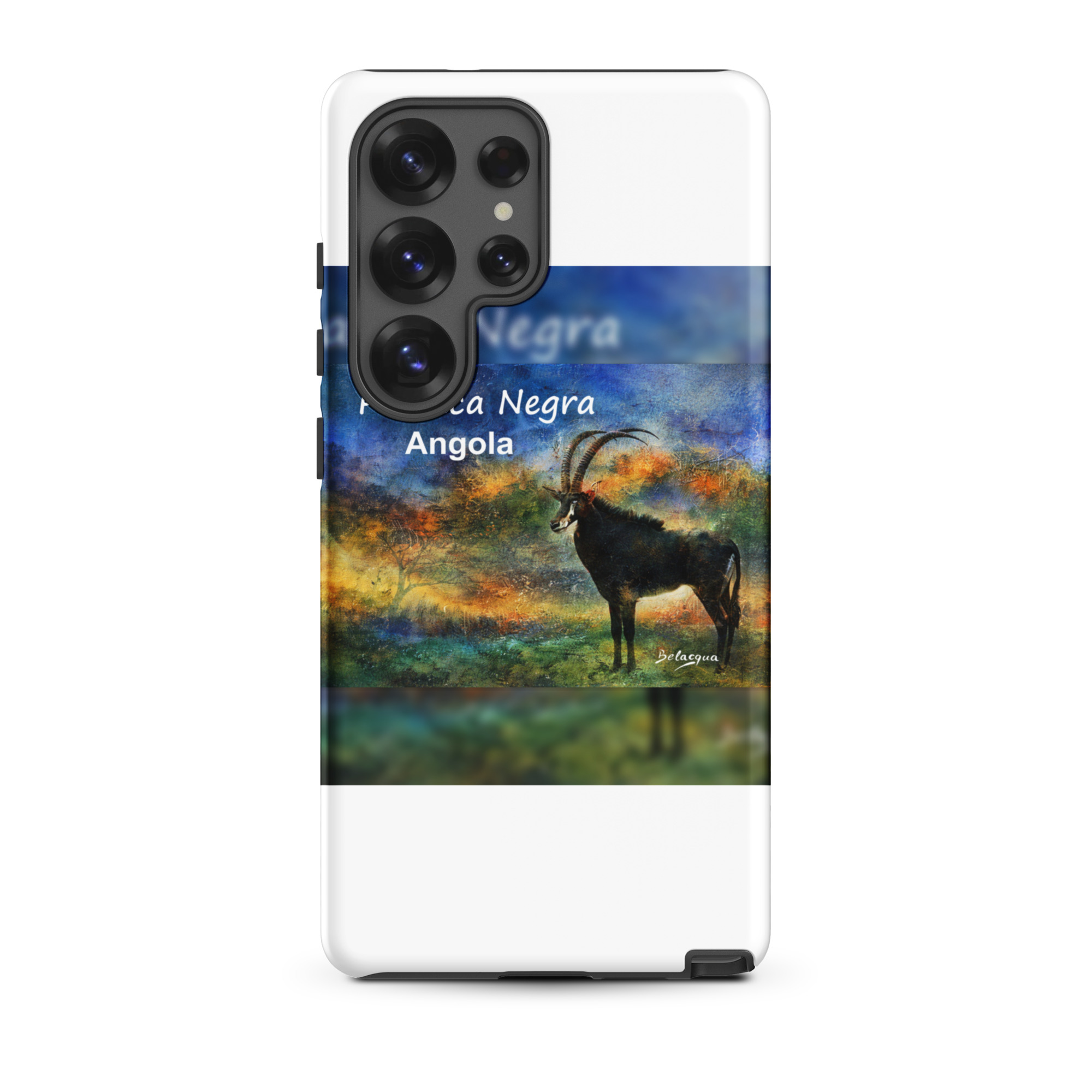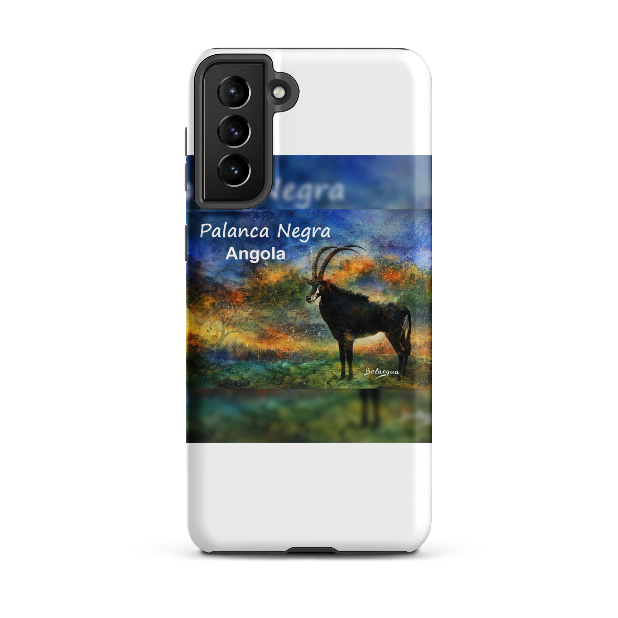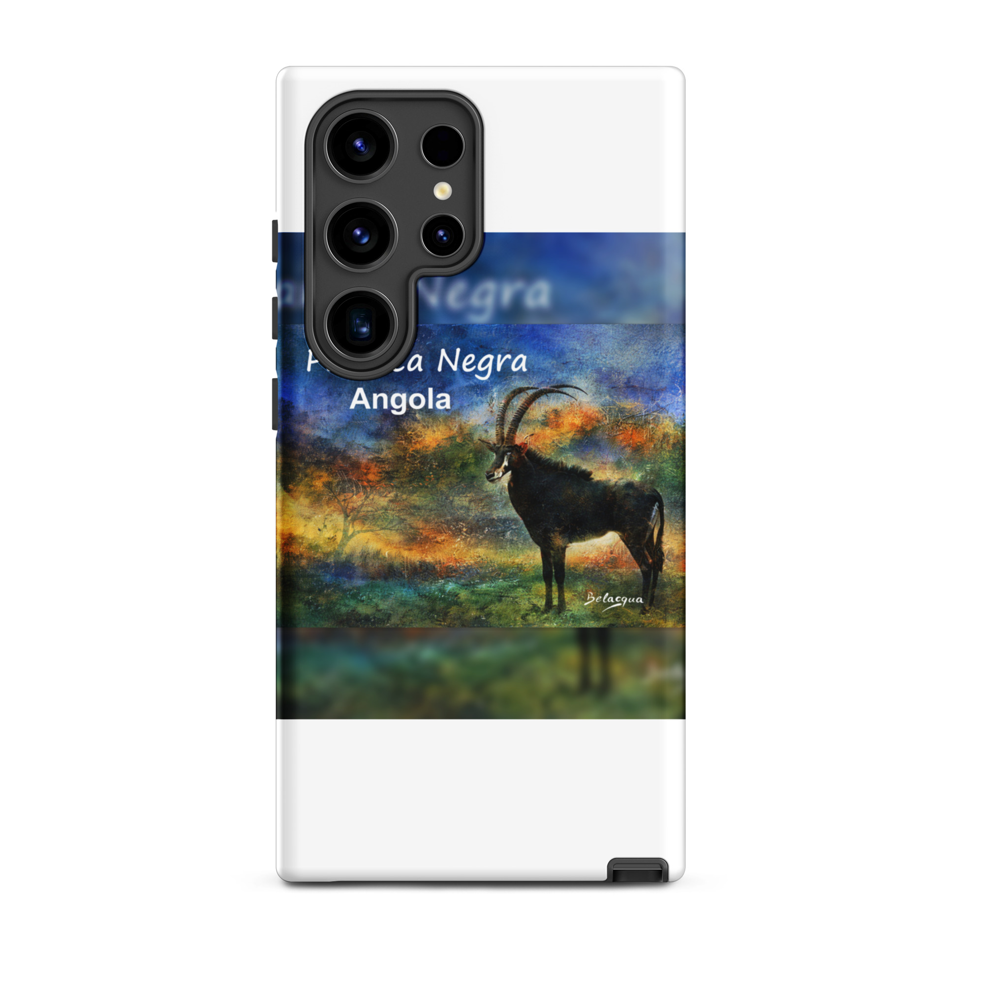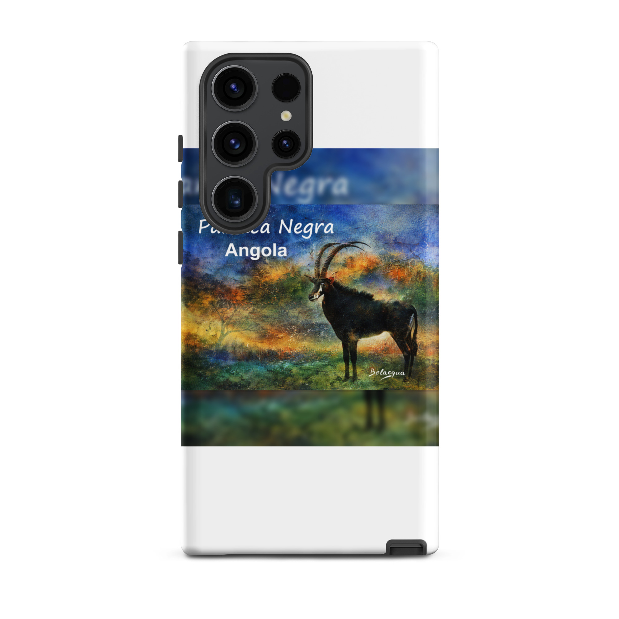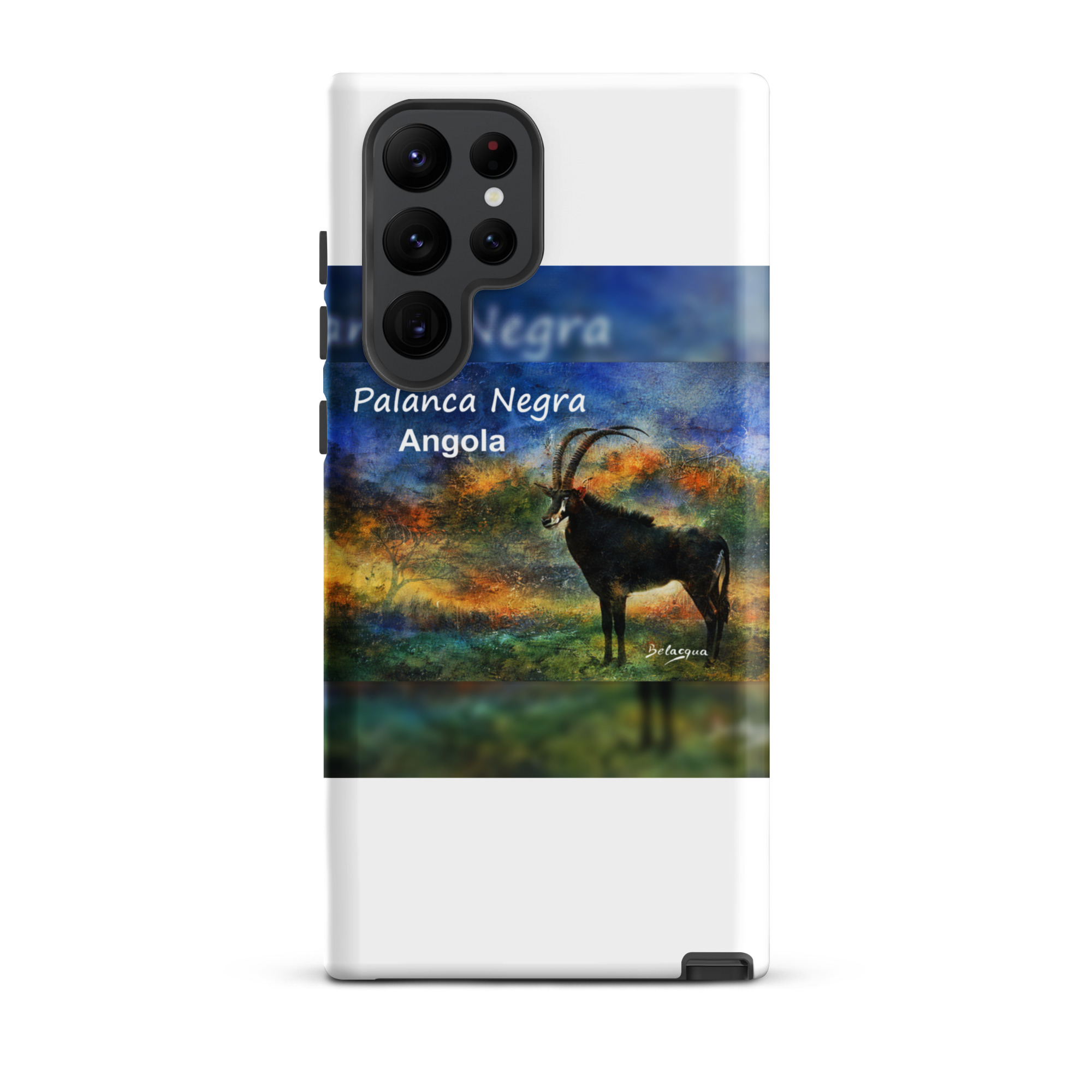 A premium Samsung tough case inspired by the iconic Palanca Negra of Angola, reinterpreted through Belaqua’s artistic vision. Built for daily protection while carrying a distinctive cultural statement.