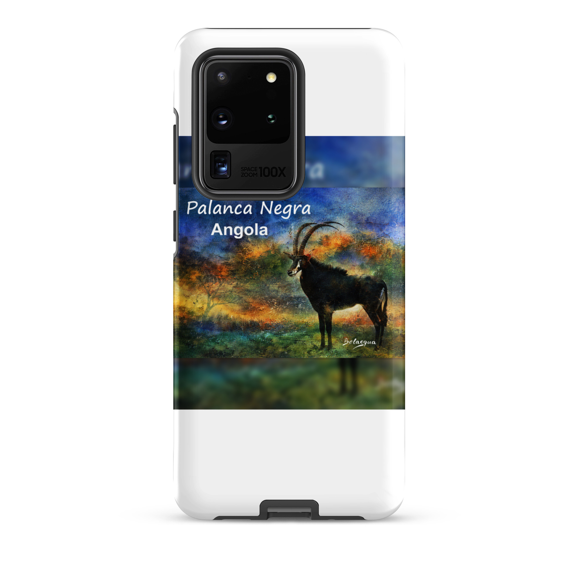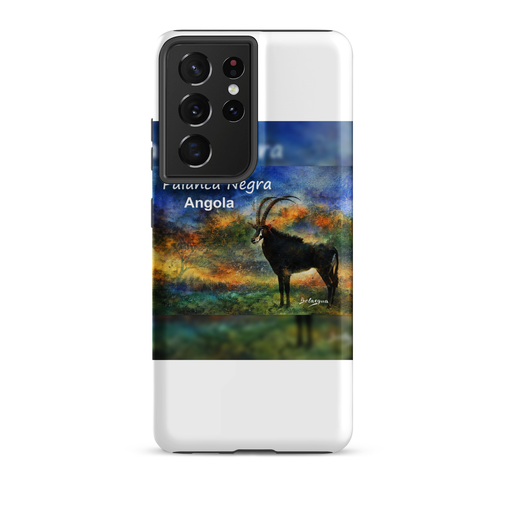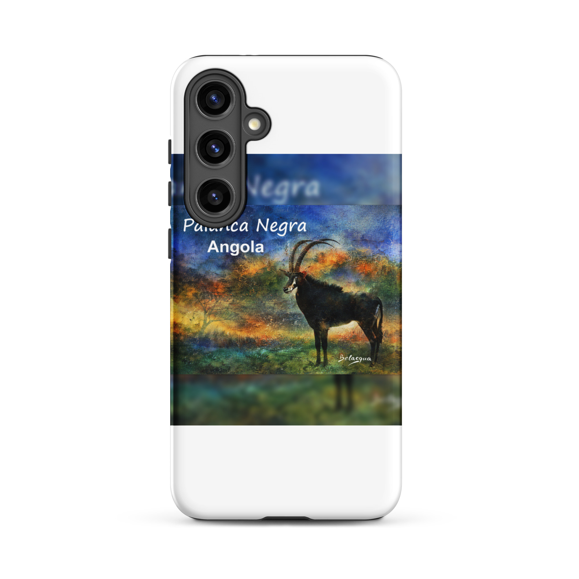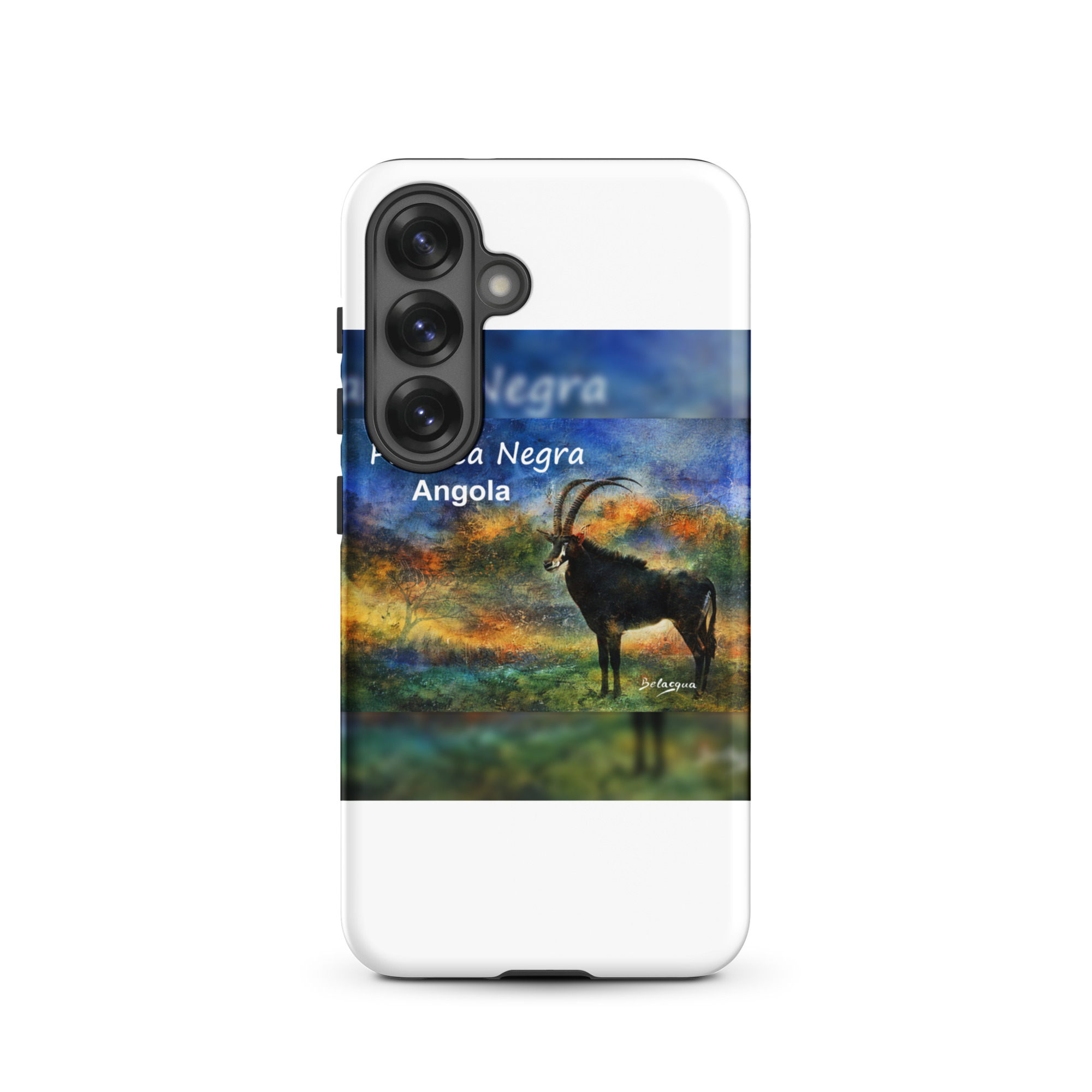 A premium Samsung tough case inspired by the iconic Palanca Negra of Angola, reinterpreted through Belaqua’s artistic vision. Built for daily protection while carrying a distinctive cultural statement.
