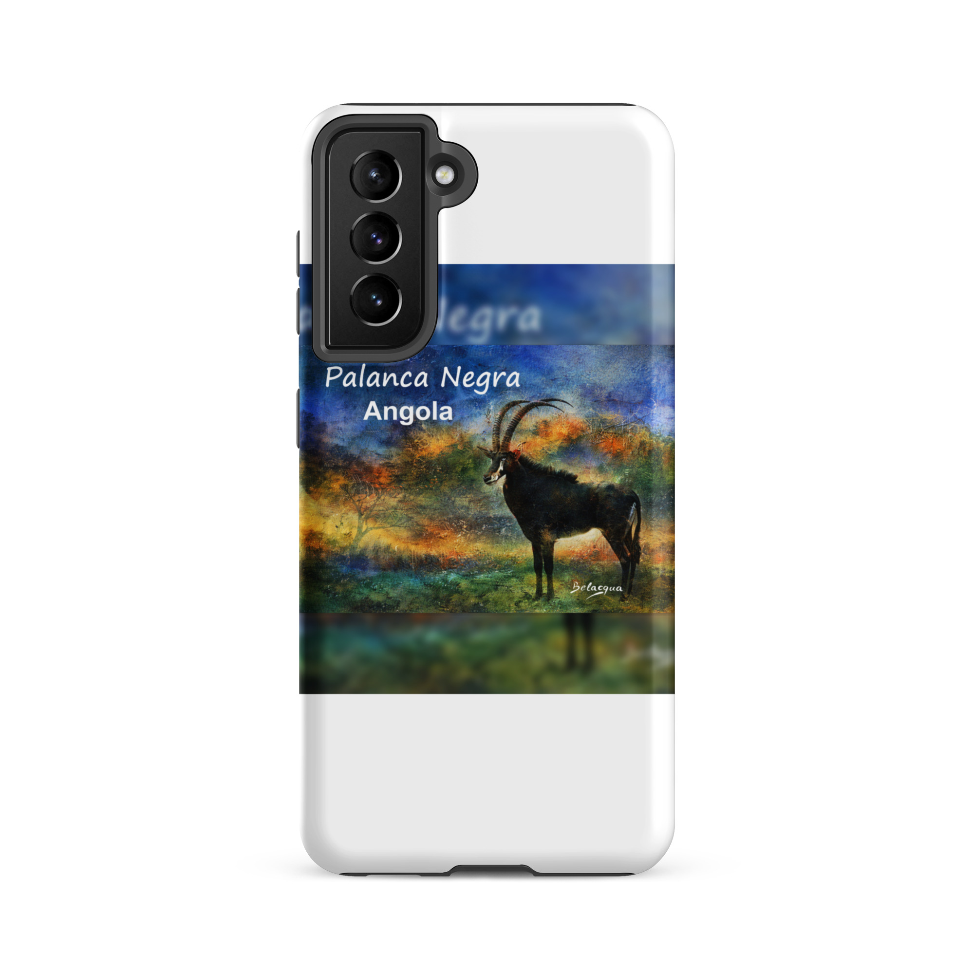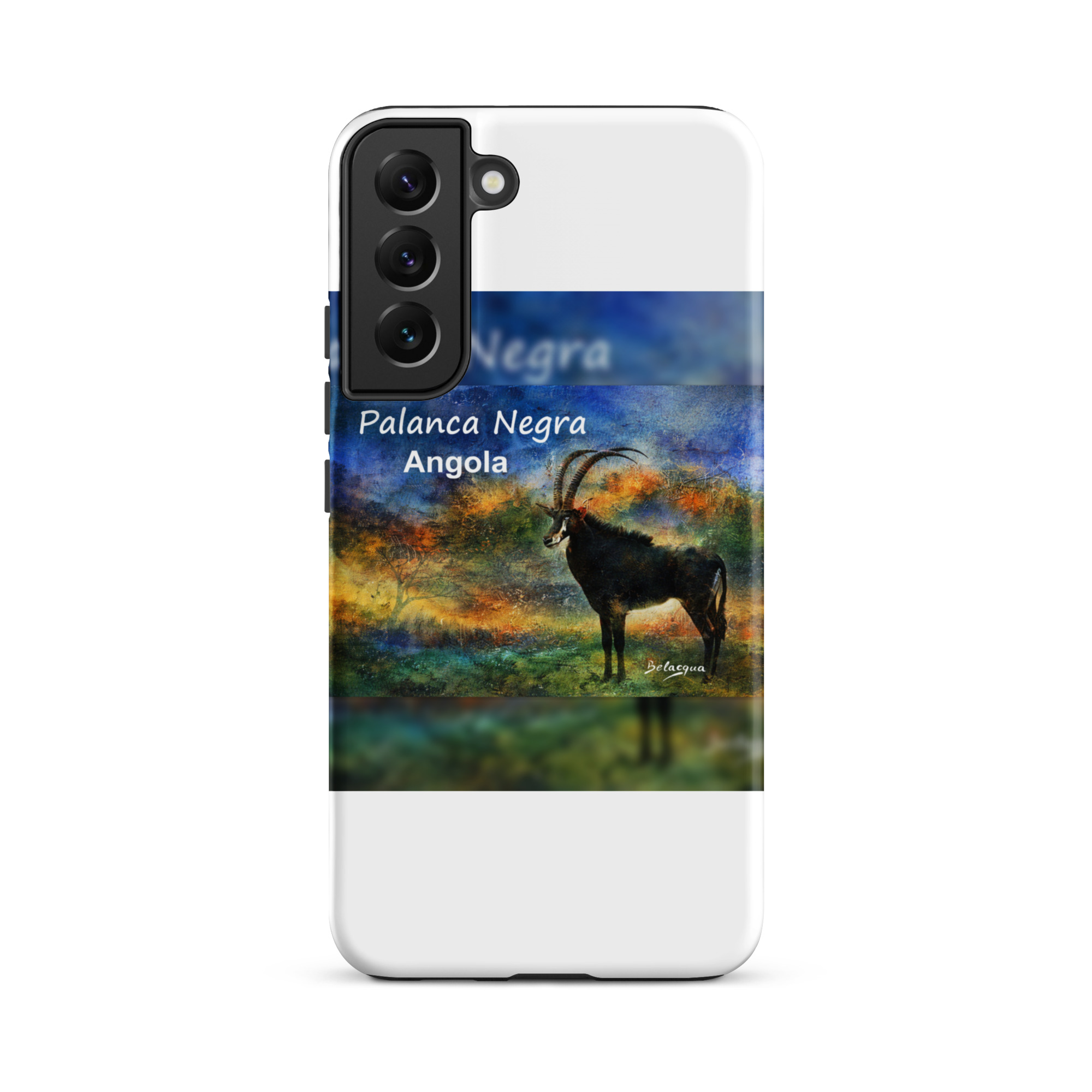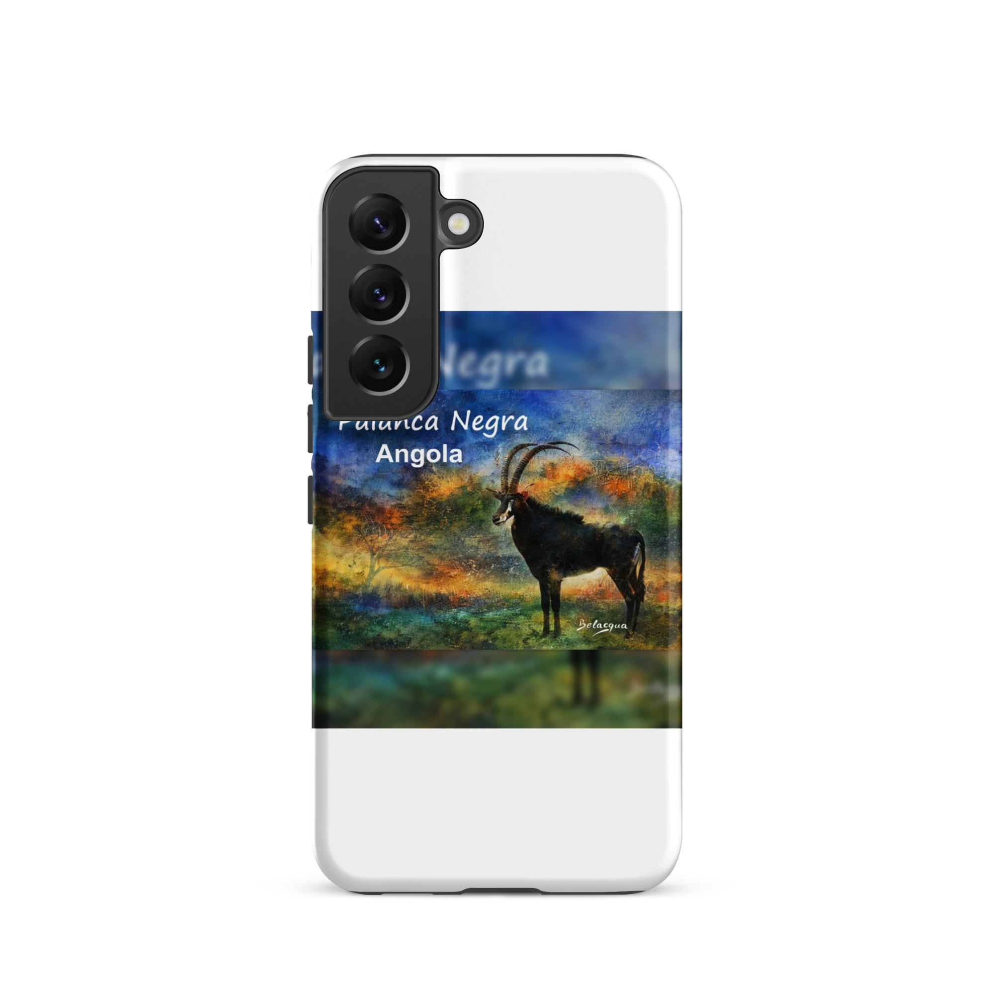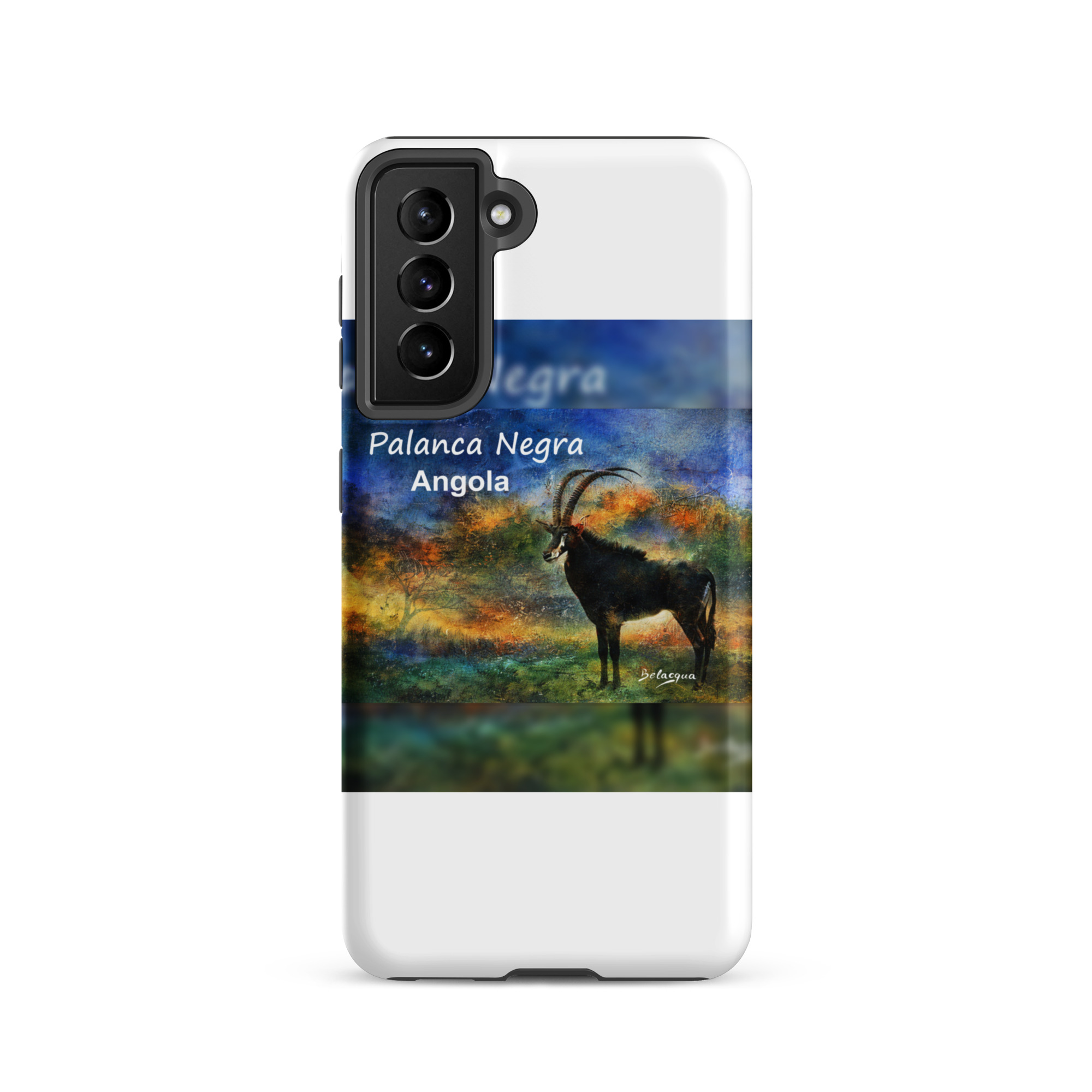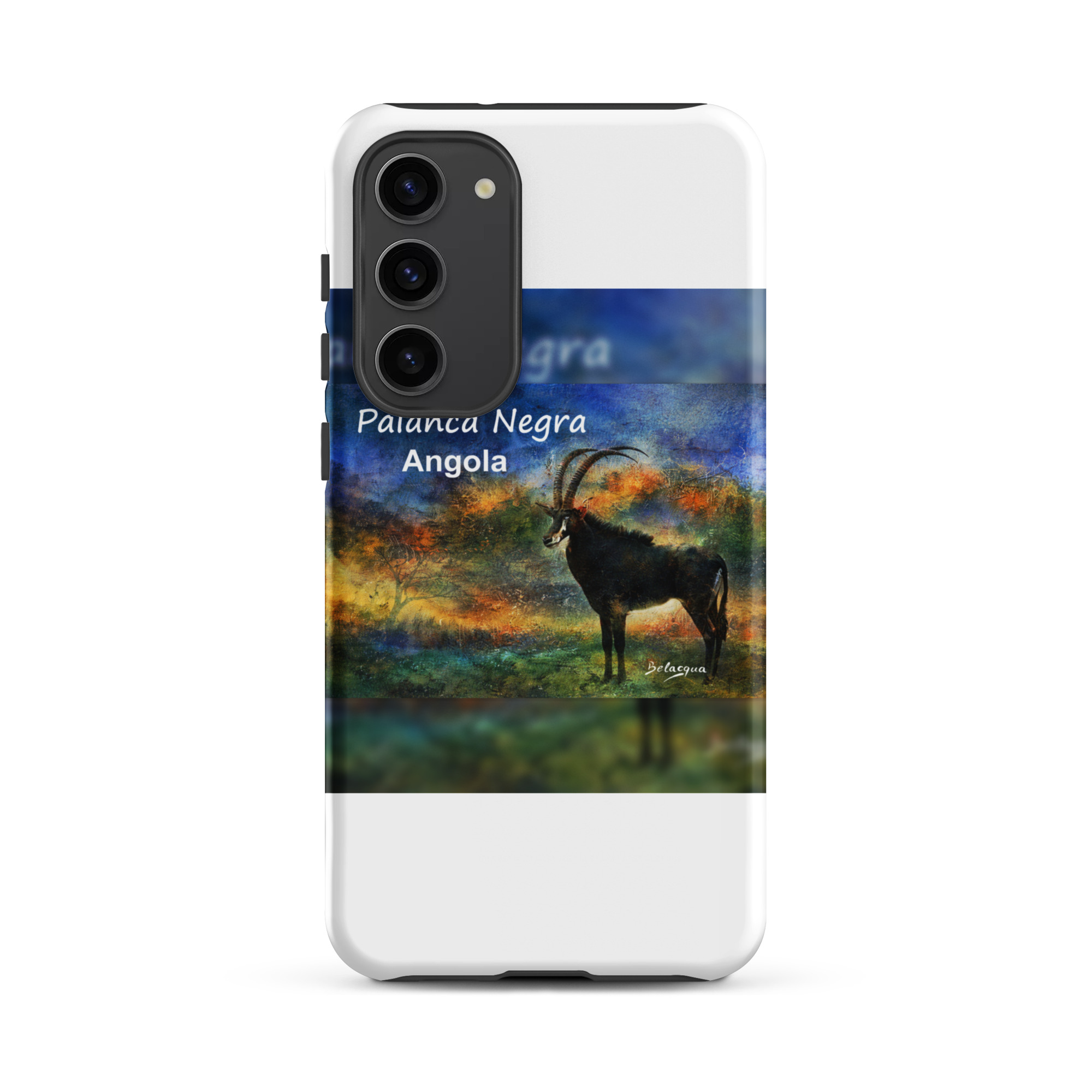 A premium Samsung tough case inspired by the iconic Palanca Negra of Angola, reinterpreted through Belaqua’s artistic vision. Built for daily protection while carrying a distinctive cultural statement.