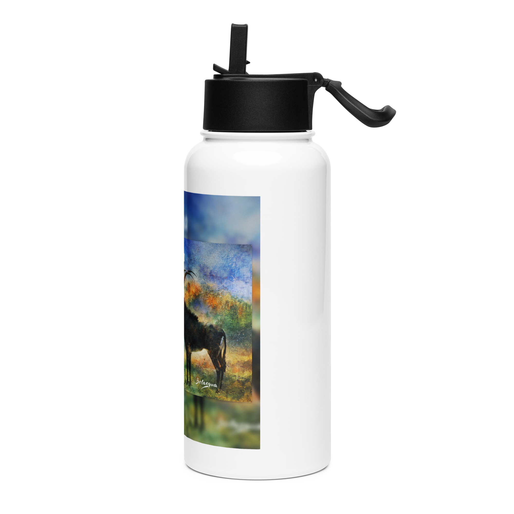 A premium stainless steel water bottle inspired by the iconic Palanca Negra of Angola, reinterpreted through Belaqua’s artistic vision. Designed for everyday hydration, it combines functionality, durability, and a distinctive cultural statement.