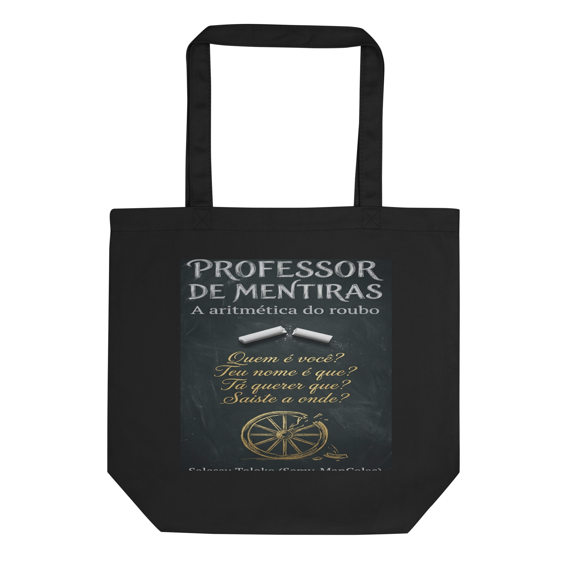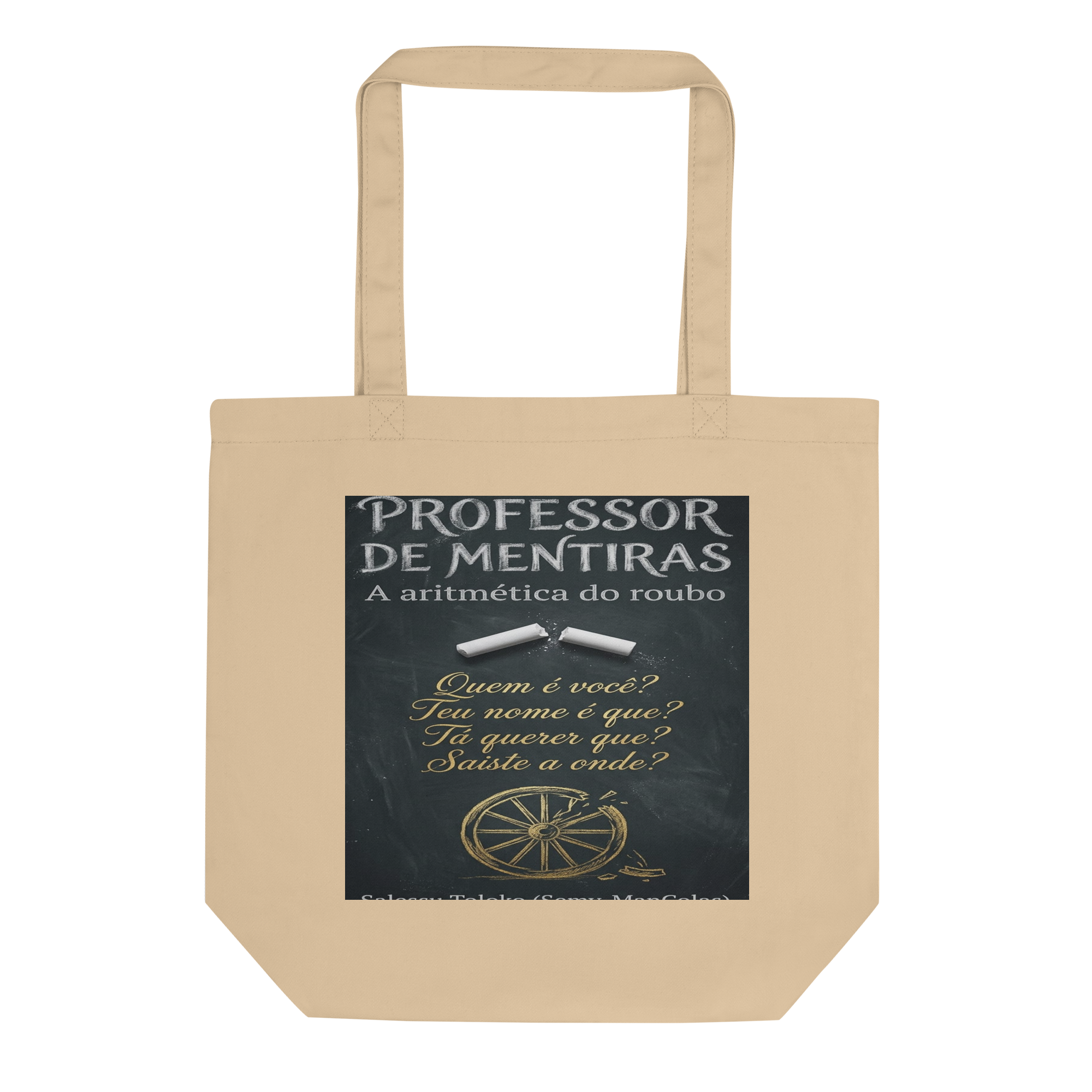 Uma sacola orgânica premium inspirada na capa de Professor de Mentiras – A aritmética do roubo. Criada para uso diário, combina utilidade, identidade literária e design colecionável.