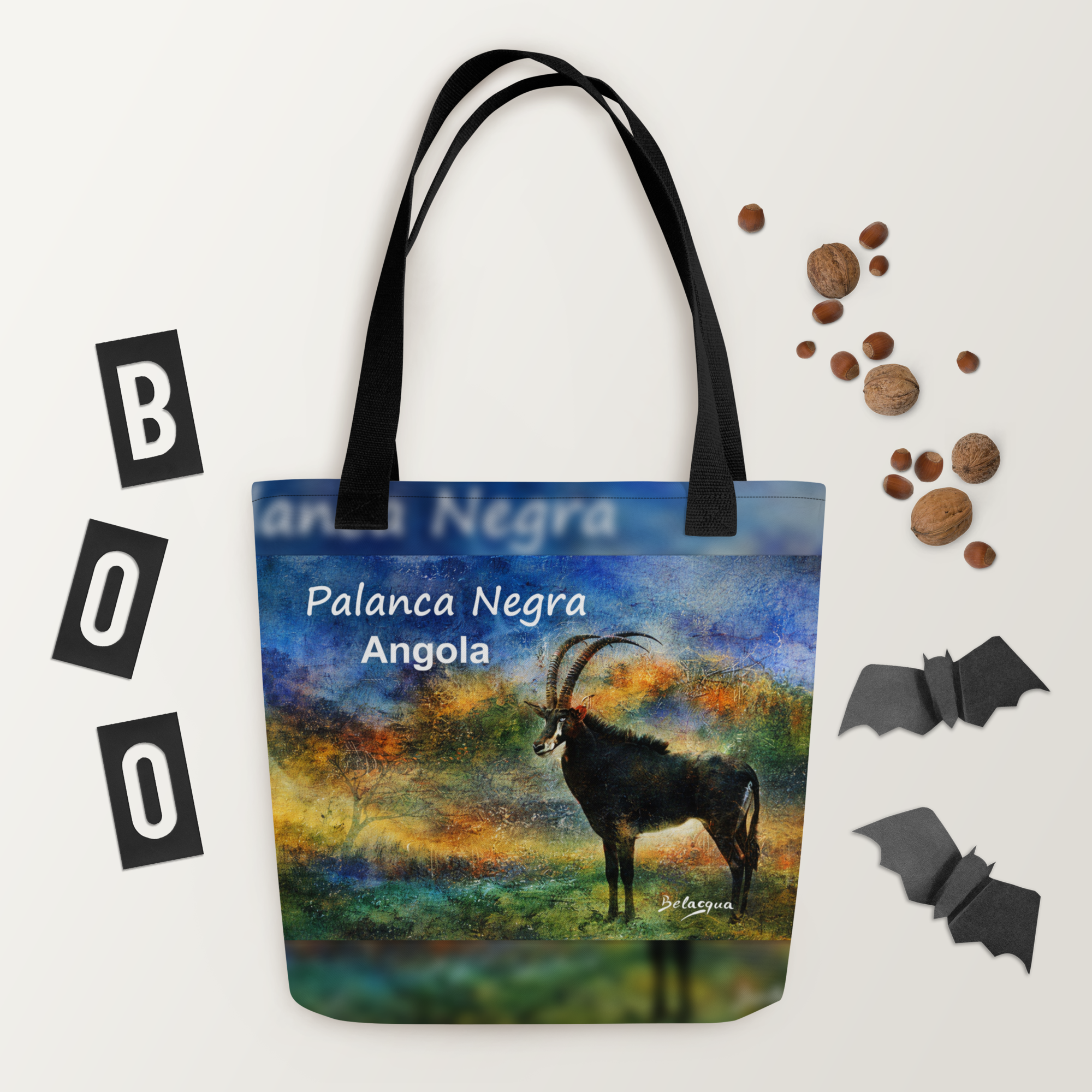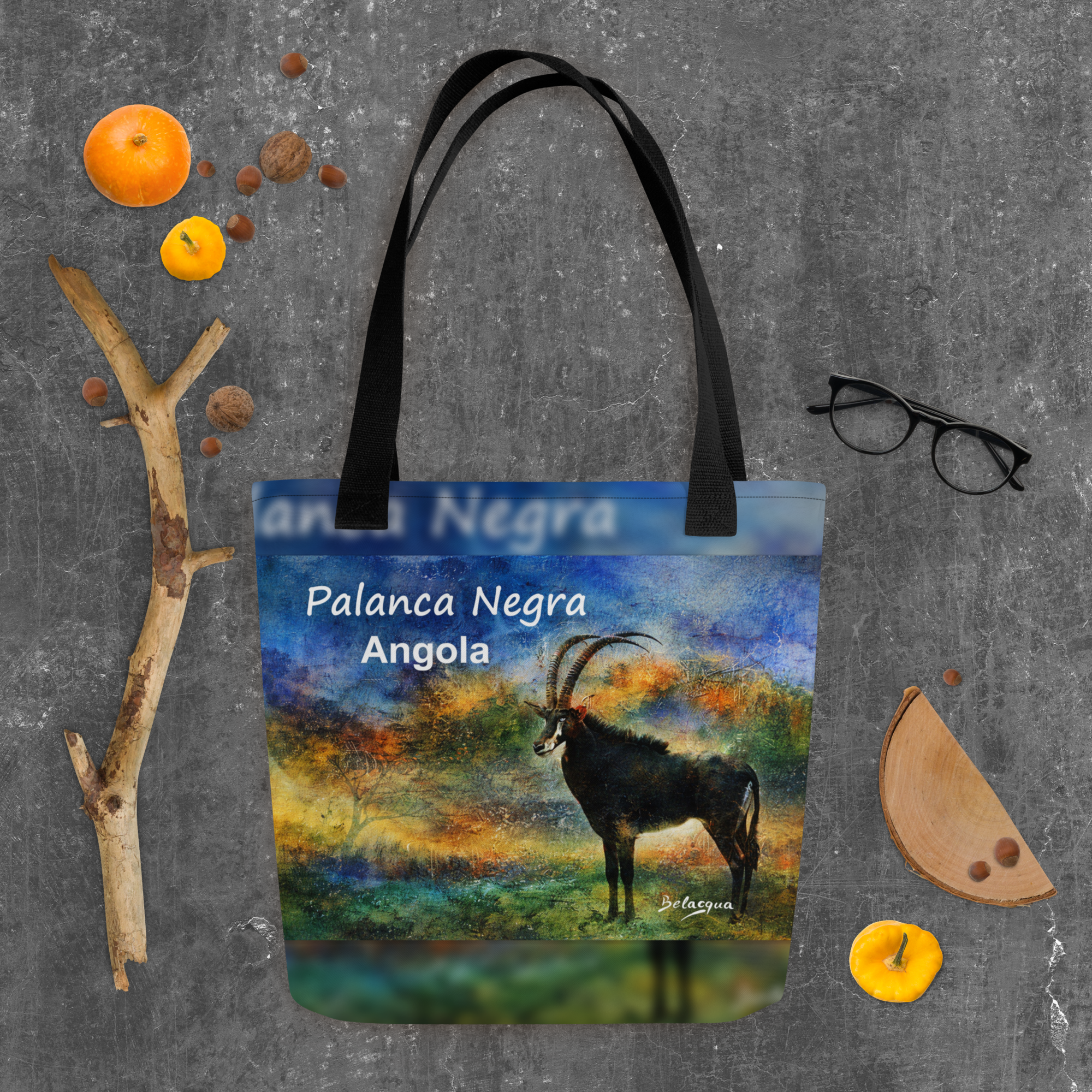 Carry a symbol of Angola with you. The Palanca Negra is one of the most iconic images of Angolan natural heritage, reinterpreted here through the artistic vision of Belacqua. This premium tote bag combines everyday function with cultural identity, turning an essential accessory into a wearable piece of art. Ideal for those who value African culture, distinctive design, and meaningful objects.